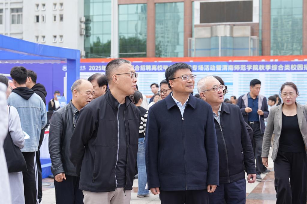 学校党委副书记、校长李强,党委副书记汪勇、袁亮、常青林,副校长卢爱刚,渭南市人力资源与社会保障局二级调研员董建明等共同深入招聘会现场指导,与多家企业代表、求职毕业生亲切交流,深入询问岗位招聘细节与毕业生求职进展,精准掌握供需双方实际情况。